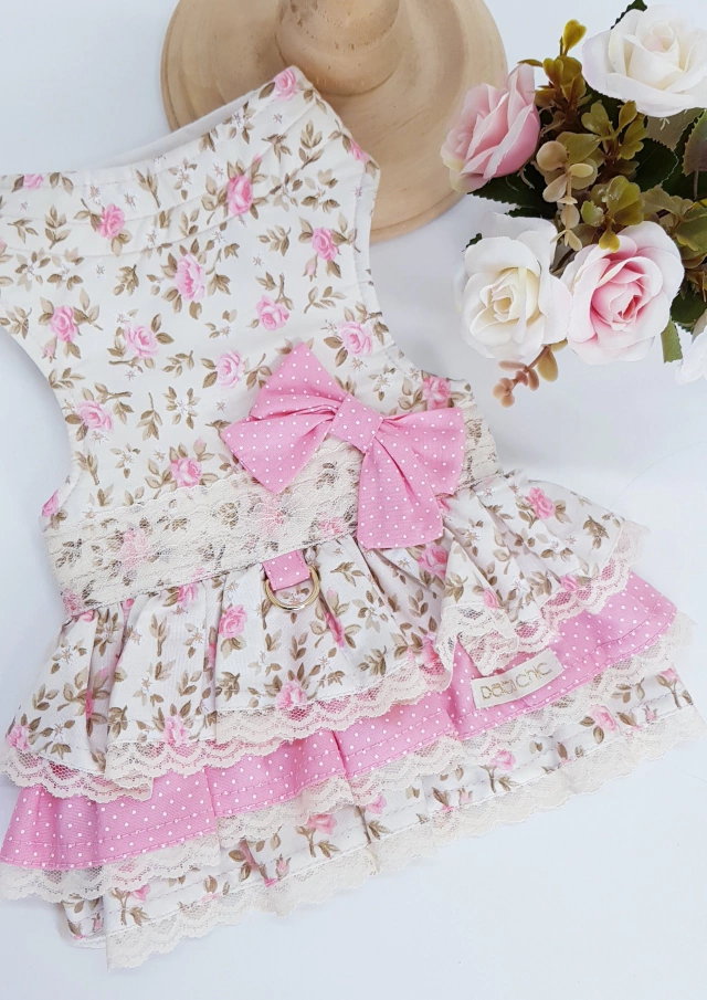 Este vestido também possui engate para guia, ideal para passeios com estilo.