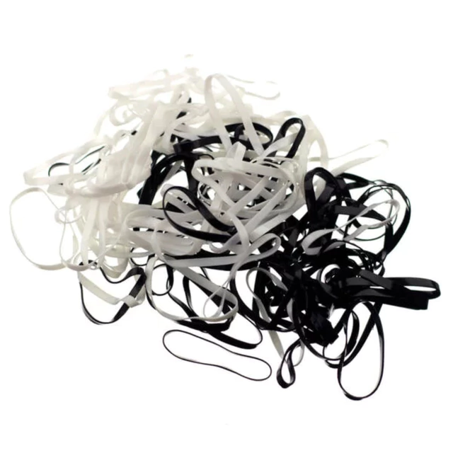 Pacote com 500 unidades de elásticos, temos nas opções colors, preto, preto/branco e pink.